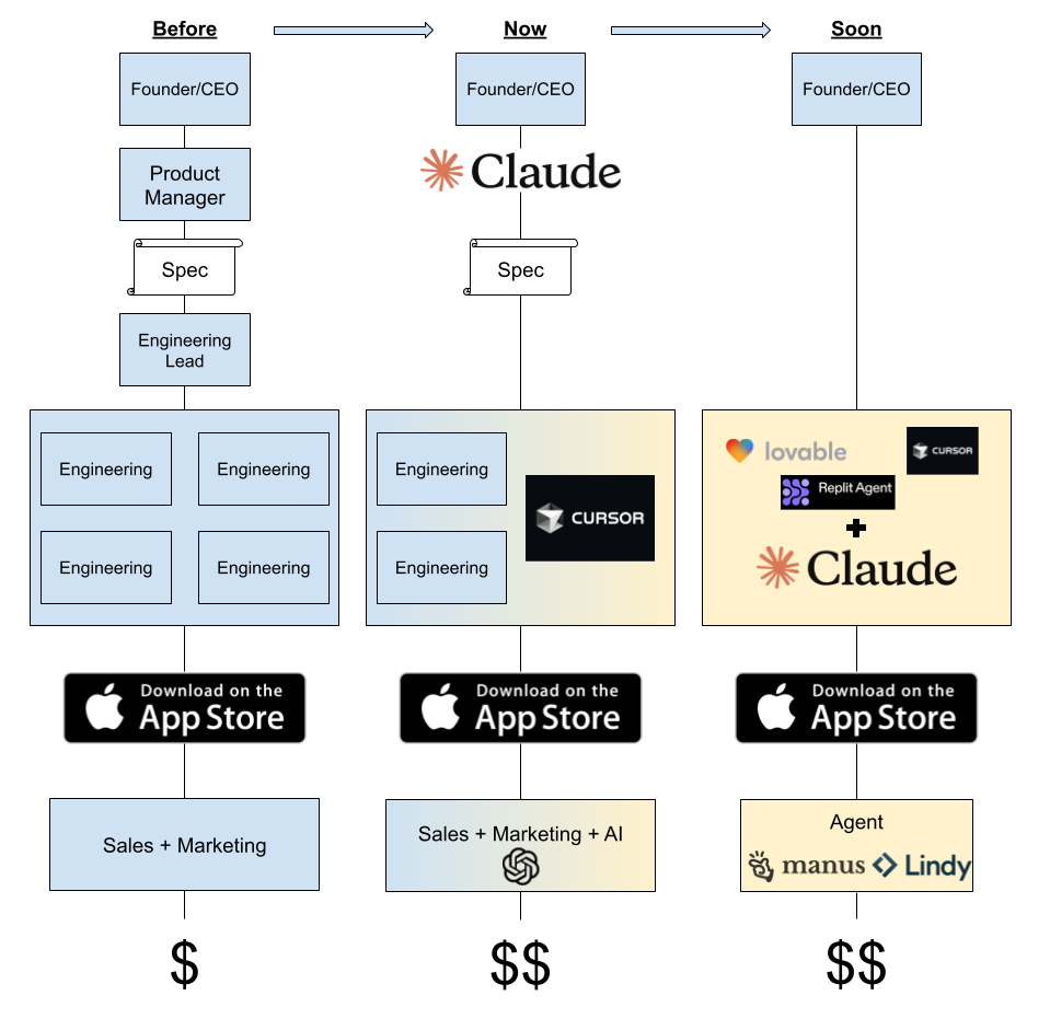 April 1, 2025We’re experiencing a profound shift in how software companies are founded, developed, and scaled, driven by the rapid advancement of AI models and sophisticated coding tools. Just a few years ago, launching a software startup required substantial capital, extended development timelines, and sizable teams of highly skilled engineers. It typically took months or even years before a viable product reached the market.